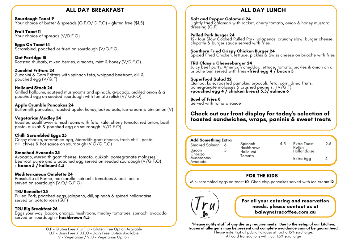 Welcome to Tru Coffee Balwyn, a delightful café nestled in the heart of Balwyn at 1058 Burke Rd. This charming spot offers an inviting atmosphere, perfect for enjoying a delicious meal any time of day.